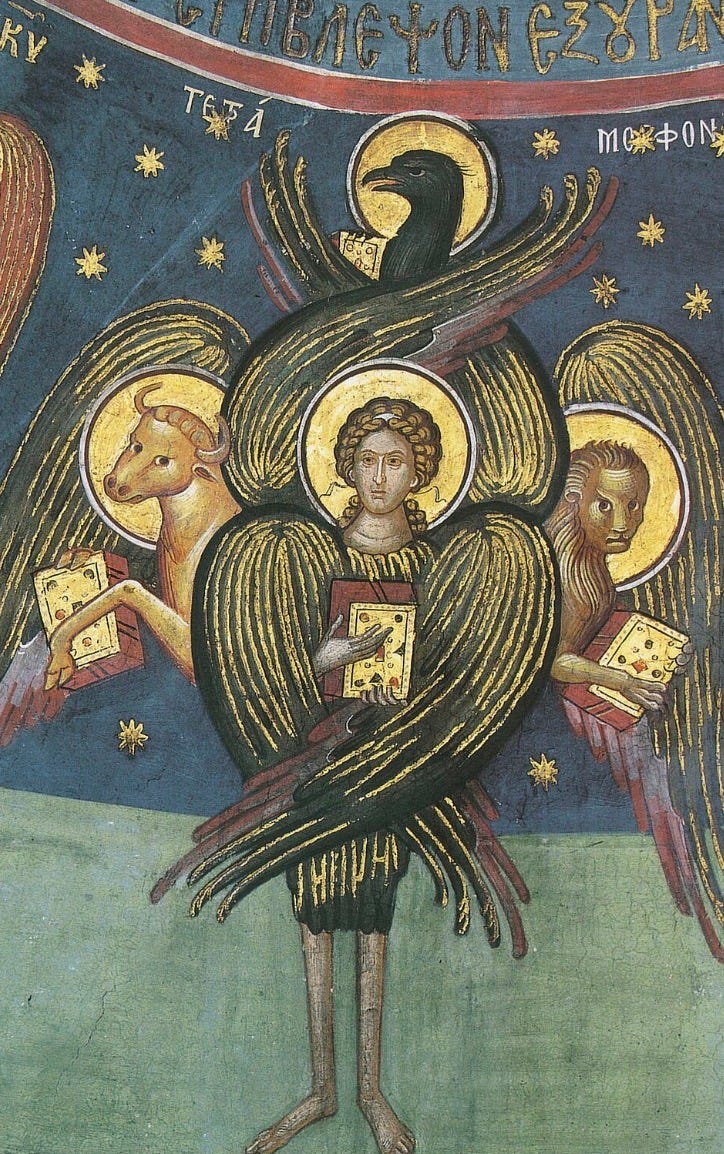 It has to be noted that the four Gospels (Matthew, Mark, Luke and John) also reveal the four faces of the Cherubim as the authorized “guardians” of the gate of God. Matthew is the face of the Ox who speaks of the “true religion” (priesthood) of Jesus Christ. Mark is the face of the Lion who speaks of the “true state” (kingship) of Jesus Christ. Luke is the face of the Eagle who speaks of the “true empire” and prophetic voice of Jesus Christ. And John is the face of “the Man”, the last Adam Jesus Christ who speaks of “new creation”, a new world.